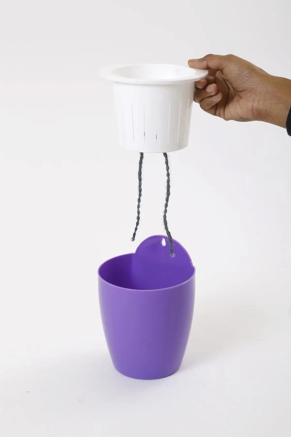 Product Name: Violet-White Self Watering Hanging Planter Flower Pot
