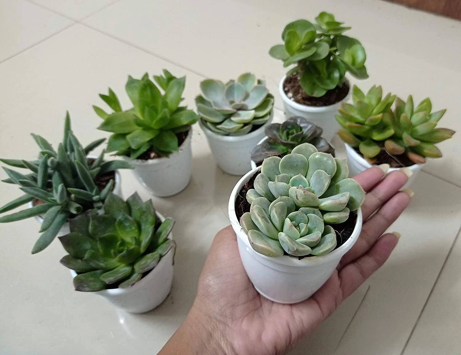- Contents: Any 8 Live succulents (depend on availability) with Small Plastic Pots